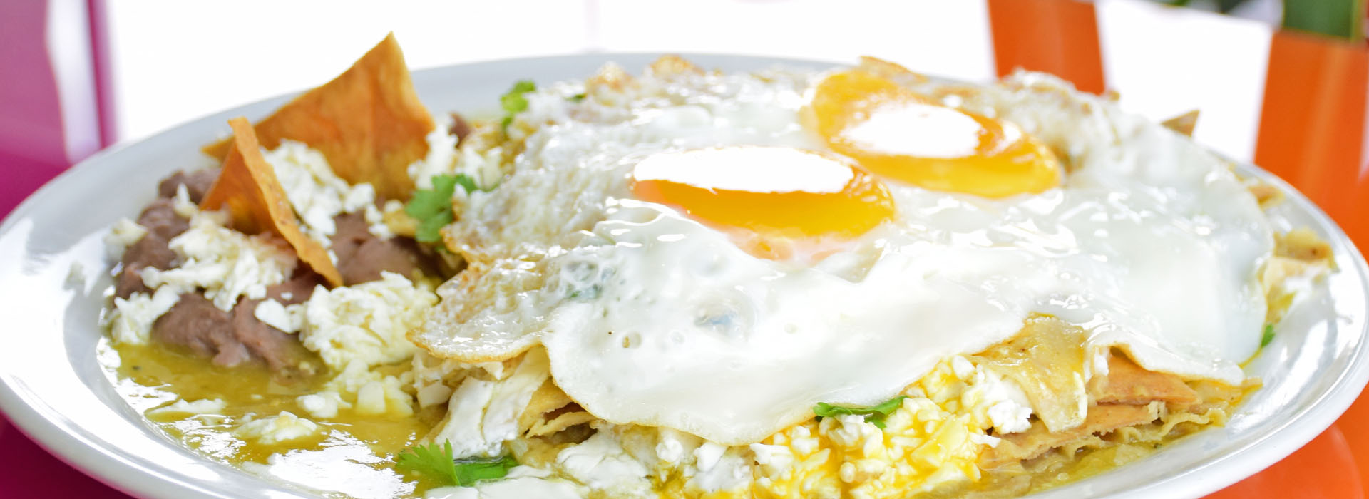 Totopos de maíz bañados en salsa verde o roja, acompañados de queso, crema y cebolla morada. También los puedes acompañar: Huevo • Pollo • Milanesa de pollo • ArracheraChill & Quiles